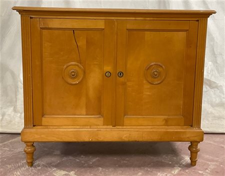 Credenza a due ante decorate a rosoni, montanti scanalati, piedi torniti (cm 107x90x54) (difetti)