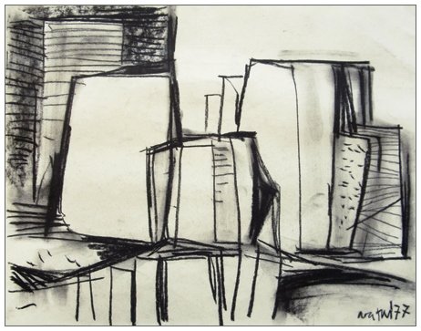 GUALTIERO NATIVI Pistoia 1921 – Greve in Chianti 1999 Studio 1977 Matita grassa su carta 24,5 x 31,2. Firma e data in b. a d. Autentica e arch. Berto Nativi, Fiesole su foto.