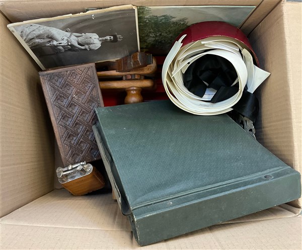 Cartone contenente oggetti di diverso uso, manifattura ed epoca (difetti)