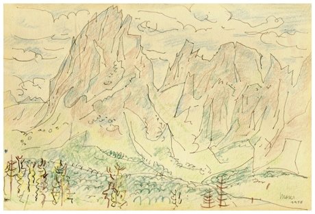 MOSES LEVY Tunisi (Tunisia) 1885 – Viareggio 1968 Senza titolo 1958 Pastelli e grafite su carta 16 x 23,5. Firma e data in b. a d.