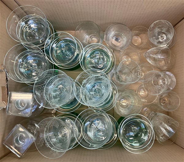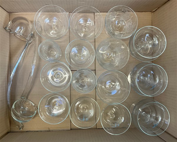 Due cartoni contenenti oggetti d'uso in vetro (difetti)