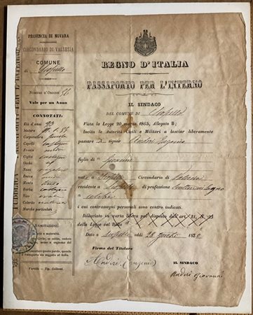 Lasciapassare Regno d'Italia (cm 28x22) (difetti)