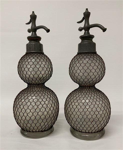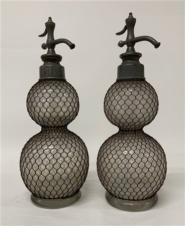 Coppia di sifoni in vetro con rubinetto in peltro. Fine secolo XIX (difetti)