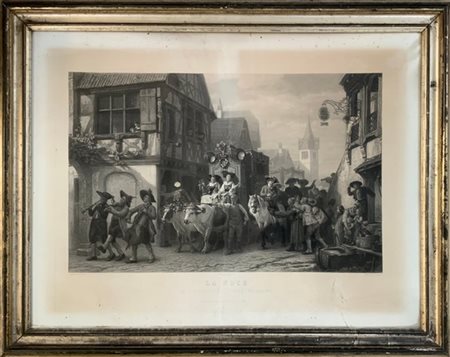 Da Gustave Brion "La noce" incisione (cm 80x105) In cornice coeva (difetti)