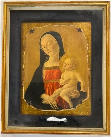 Ignoto del secolo XX, "Madonna con bambino", carta applicata su tavola (cm 37x27). In cornice (difetti)