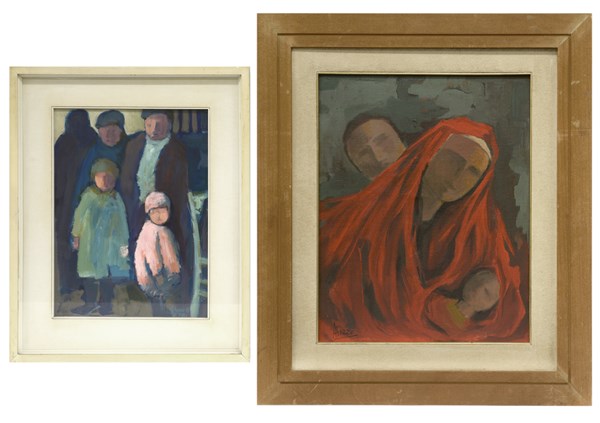 Lotto composto da un olio su tela e uno su masonite, raffiguranti figure di aut
