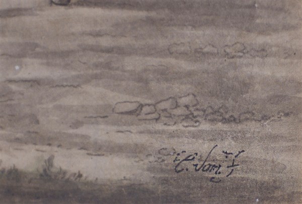 Firma indecifrata "Paesaggio con figure e cavalli" acquarello (cm 23x28) firmat