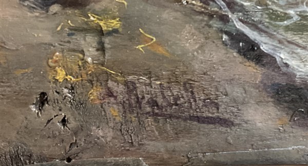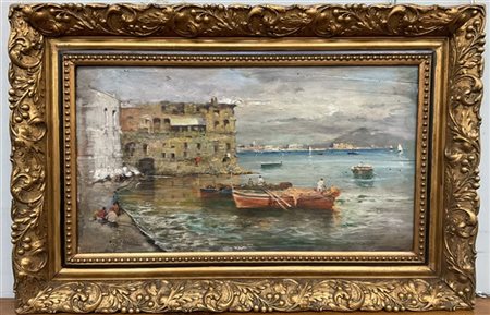 (Attribuito) "Golfo di Napoli" olio su tavola (cm 36x60) Firmato in basso a sinistra. (difetti e restauri) In cornice