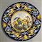 Manifattura italiana, coppia di piatti da parete in maiolica decorati a motivi