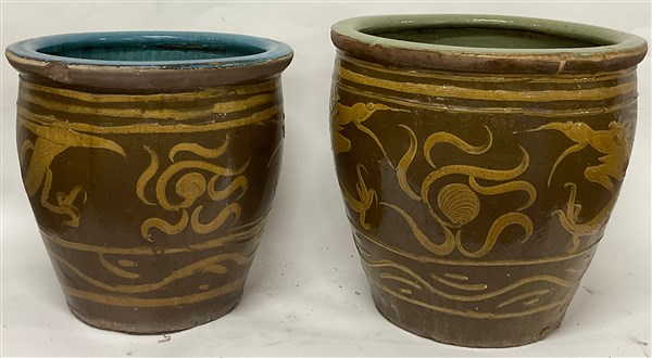Due vasi da esterno in ceramica decorati con draghi