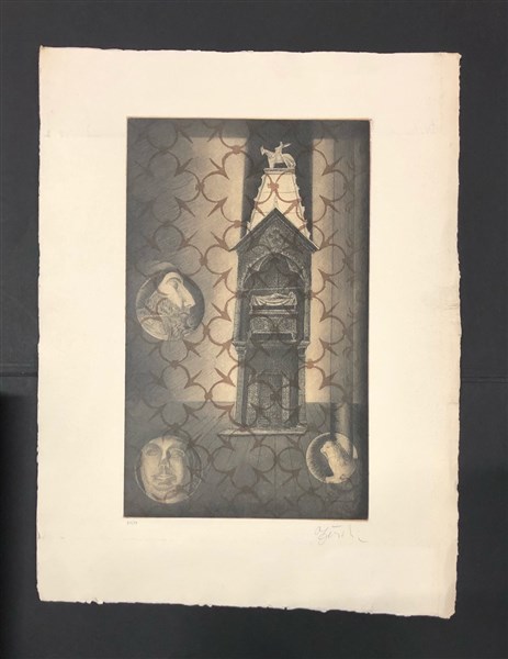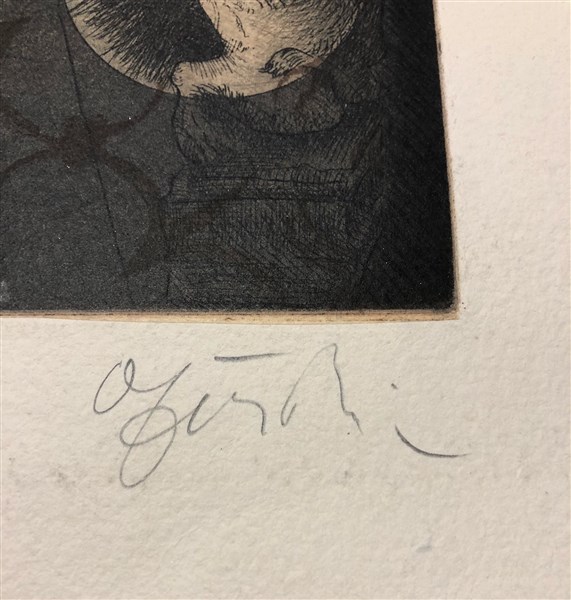 Firma indecifrata "Senza titolo", acquaforte e acquatinta a colori