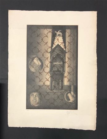 Firma indecifrata "Senza titolo", acquaforte e acquatinta a colori (lastra cm 4