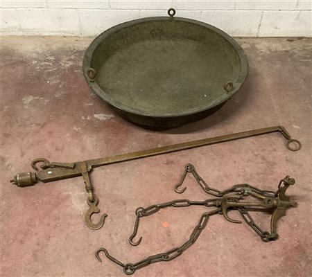 Stadera in bronzo con conca in rame. (diametro cm 92) (difetti e mancanze)