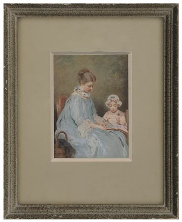 "La lettura" tecnica mista su carta (cm 24.5x17.5) Firmato in basso a sinistra.