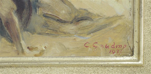 Carlo Gaudina "San Bovo e il saraceno" 1933, olio su cartone (cm 35x25) Firmato