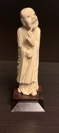 Okimono in avorio raffigurante uomo che si spazzola i denti Giappone, inizi sec
