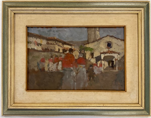 "In processione" olio su tavola (cm 37x50) In cornice (difetti)