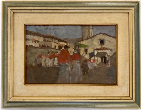 Uberto Dell' Orto "In processione" olio su tavola (cm 37x50) In cornice (difetti