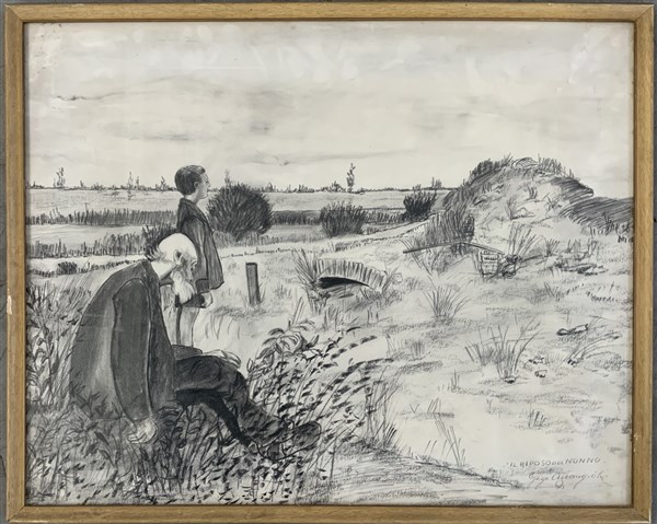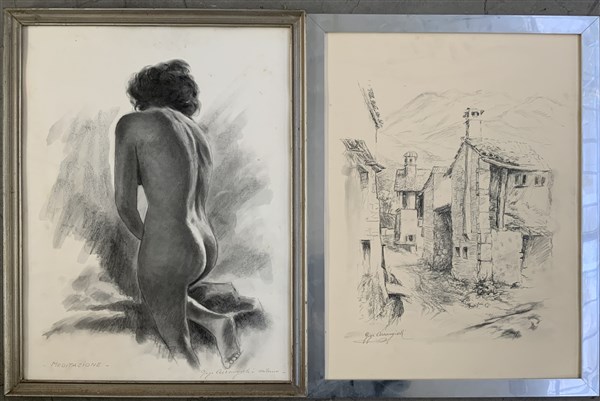 Gigi Arcangioli Lotto di tre disegni a carboncino di soggetto e dimensioni diver