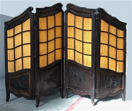 Paravento in legno a quattro ante di forma sagomata, 1920 ca (cm 183x256) (dife