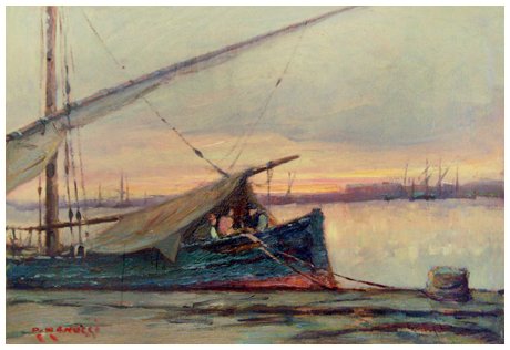 RENUCCIO RENUCCI Livorno 1880 – 1947 Senza titolo Olio su tavola 25 x 37,2. Firma in b. a s.; sul verso timbro Saletta Viviani, Pisa.