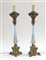 Coppia di lampade fusto in opaline decorato a dorature con aironi e volute , ba