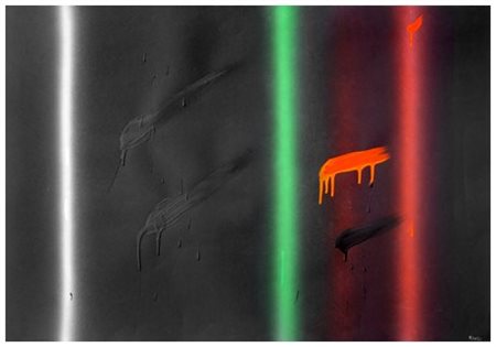 ENNIO FINZI Venezia 1931 Senza titolo T.m. su cartoncino 70 x 100. Firma in b. a d. Autentica dell’autore su foto.