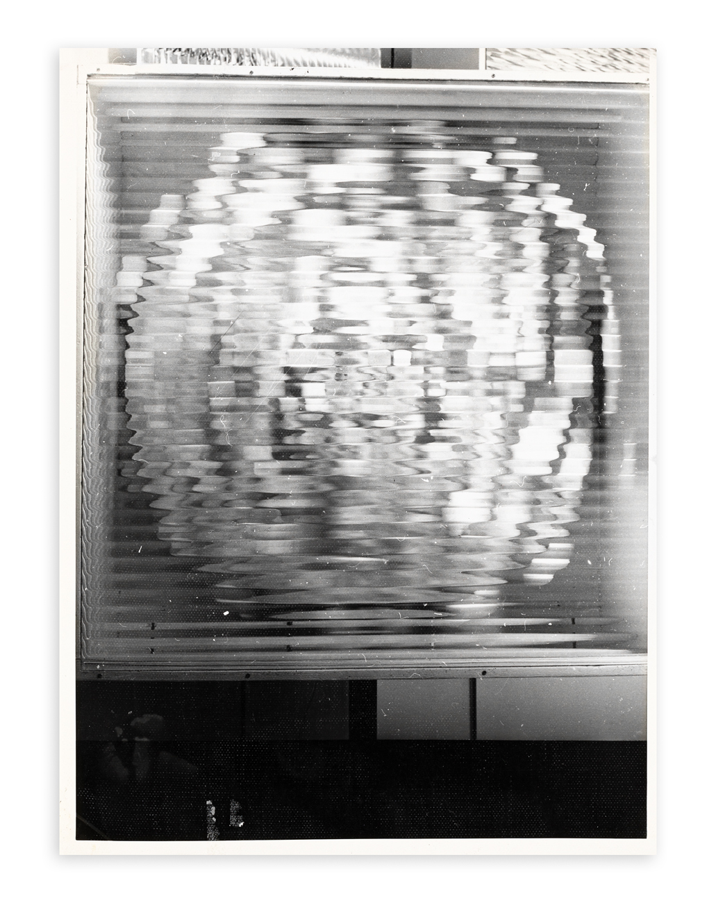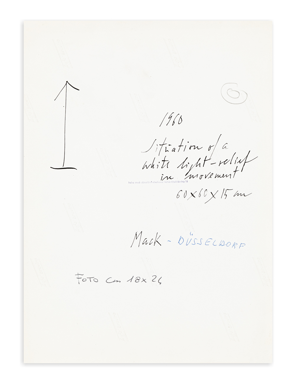 Stampa alla gelatina ai Sali d'argento raffigurante un'opera scultorea di Heinz Mack 'Situation of a white light-relief in movement', 1960