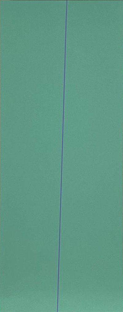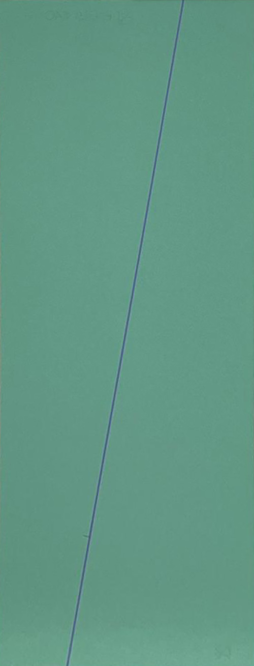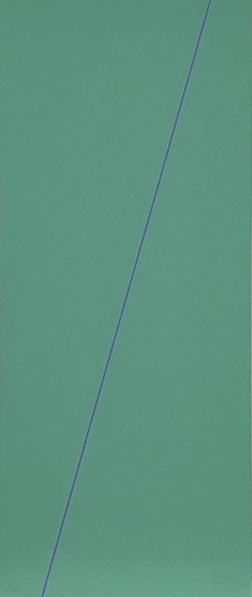 MARIO NIGRO, "Dalla "metafisica del colore": i concetti elementari costruttivi geometrici, Serie di 11 opere, 10 tempere su tela, a due colori alternati, Dim. 178x68, Dal progetto per il lavoro presentato alla 39° Biennale di Venezia (1978) per la Rassegna internazionale: Arte Natura / La Natura dell'Arte: ETTORE E ANDROMACA progressione simmetrica di un segno costruito sulla Sezione Aurea; Al verso: esemplare n° 32/100 e firmato in basso a destra, Opera senza cornice