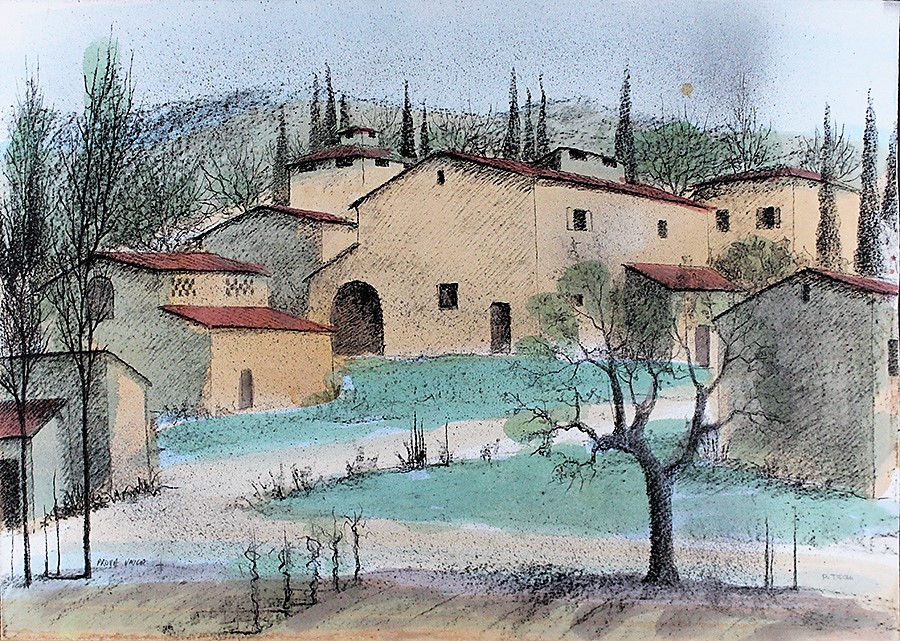 PAOLO TOSCHI, Senza titolo, Anni '80, Litografia acquarellata, Dim. 50x70, Al verso: Esemplare N° Prova unica in basso a sinistra, firmato in basso a destra, Opera senza cornice