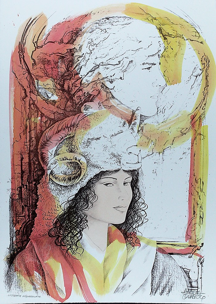 ANDREA QUARTO, Senza titolo, Anni '80, Litografia acquarellata, Dim. 70x50, Al verso: tecnica in basso a sinistra, firmato in basso a destra, Opera senza cornice