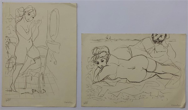 Lotto composto da una xilografia - prova di stampa di Maccari (foglio cm 50x35) e due litografie raffiguranti nudi femminili di Liberatore (34,5x24,5)