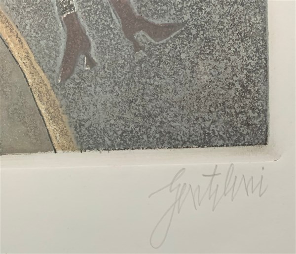 Franco Gentilini "Senza titolo" acquaforte e acquatinta a colori - prova d'arti