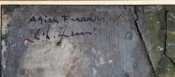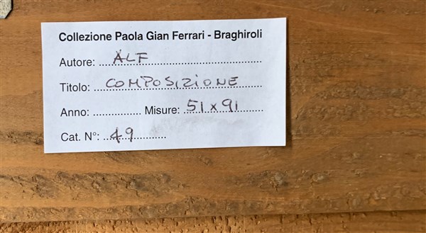 Firma indecifrata "Senza titolo" tecnica mista su compensato