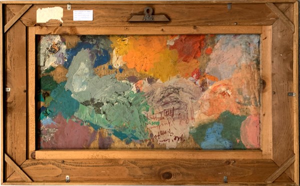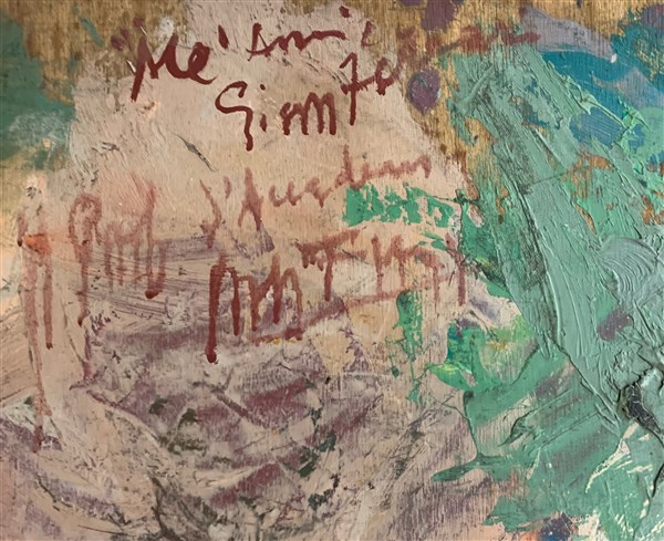 Firma indecifrata "Senza titolo" tecnica mista su compensato cm 50x90 firmato e
