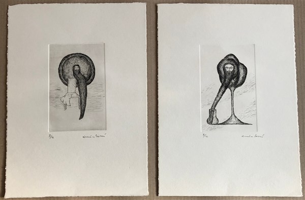 Enrico Luzzi "Senza titolo" due acqueforti cm 35x25 firmate, numerate es. 3/12