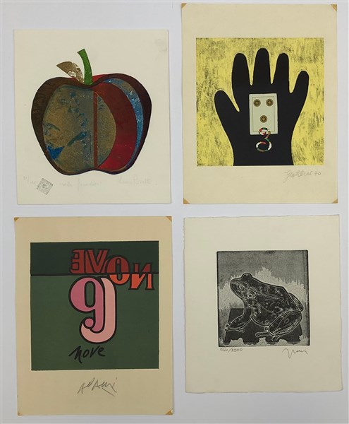Lotto composto da quattro grafiche di soggetti e autori diversi (misura max cm 30x23,5); due di Bolaffiarte, tutte firmate