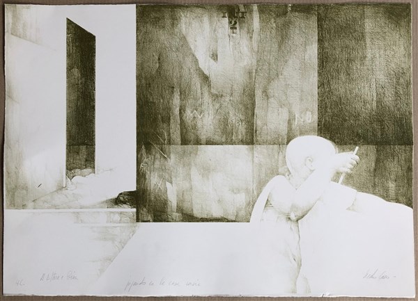 Lotto 2735 | Pedro Cano "Giocando nella casa vuota" 1982 litografia cm 50x70 firmata, titolat