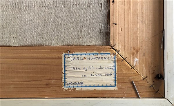 Carlo Montarsolo "Mare agitato color acciaio" 1966 olio su masonite cm 30x50 fir