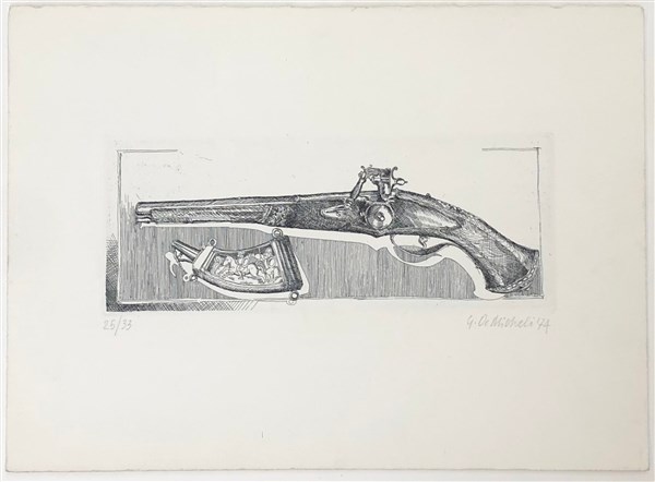 Lotto 2774 | Gioxe De Micheli "Senza titolo" 1974 acquaforte (lastra cm 9,5x25; foglio cm 25x