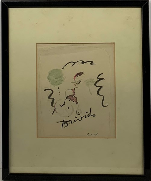 Lotto 2809 | Franz Marangolo (Attr.) "Brivido" tecnica mista su carta cm 20x16 firmato in ba