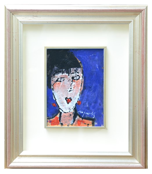 Franco Rognoni "Gli orecchini rossi" olio su carta intelata cm 22x16 firmato in