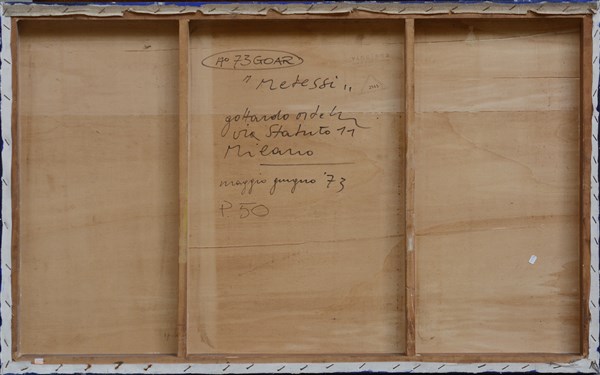 Gottardo Ortelli "Metessi" 1973 acrilico su tela applicata su tavola cm 73x119 f