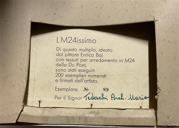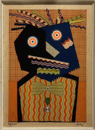 Enrico Baj "Mr. Dupont de Nemours" 1969 multiplo realizzato con tessuti M24 dell