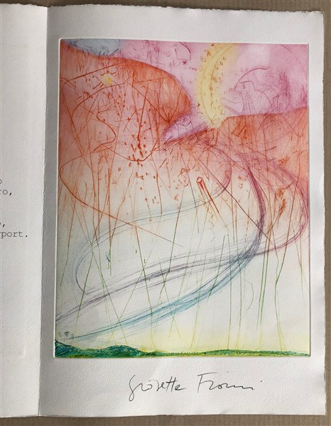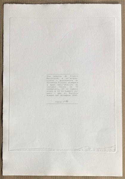 stampata su foglio doppio con poesia di Franco Marco Aldi, firmata da entrambi gli autori in basso; numerata al retro 24/55
