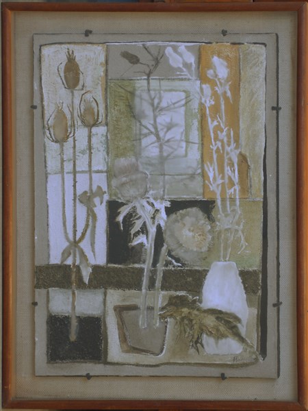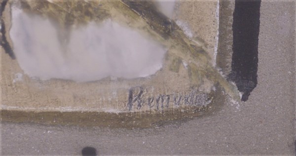 Lotto 2962 | Firma indecifrata "senza titolo" tecnica mista su blocco di cemento cm 70x50. I