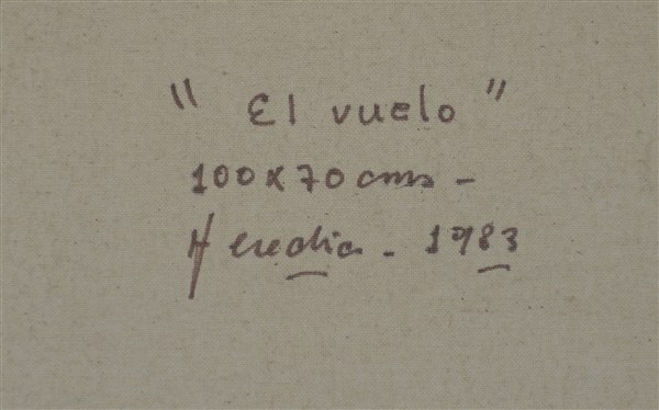Raul Heredia "El vuelo" 1983 olio su tela cm 70x100 firmato e datato in basso a