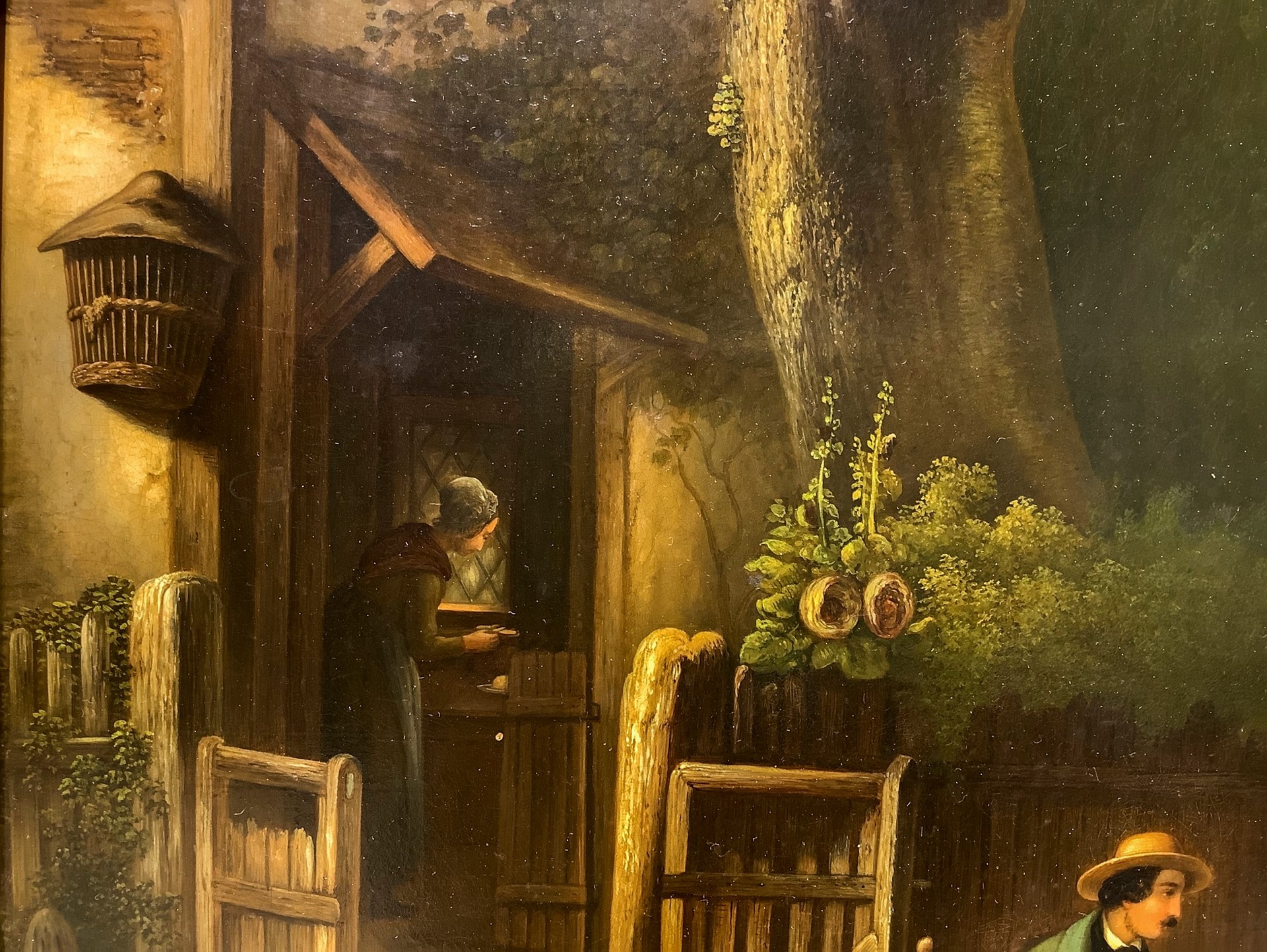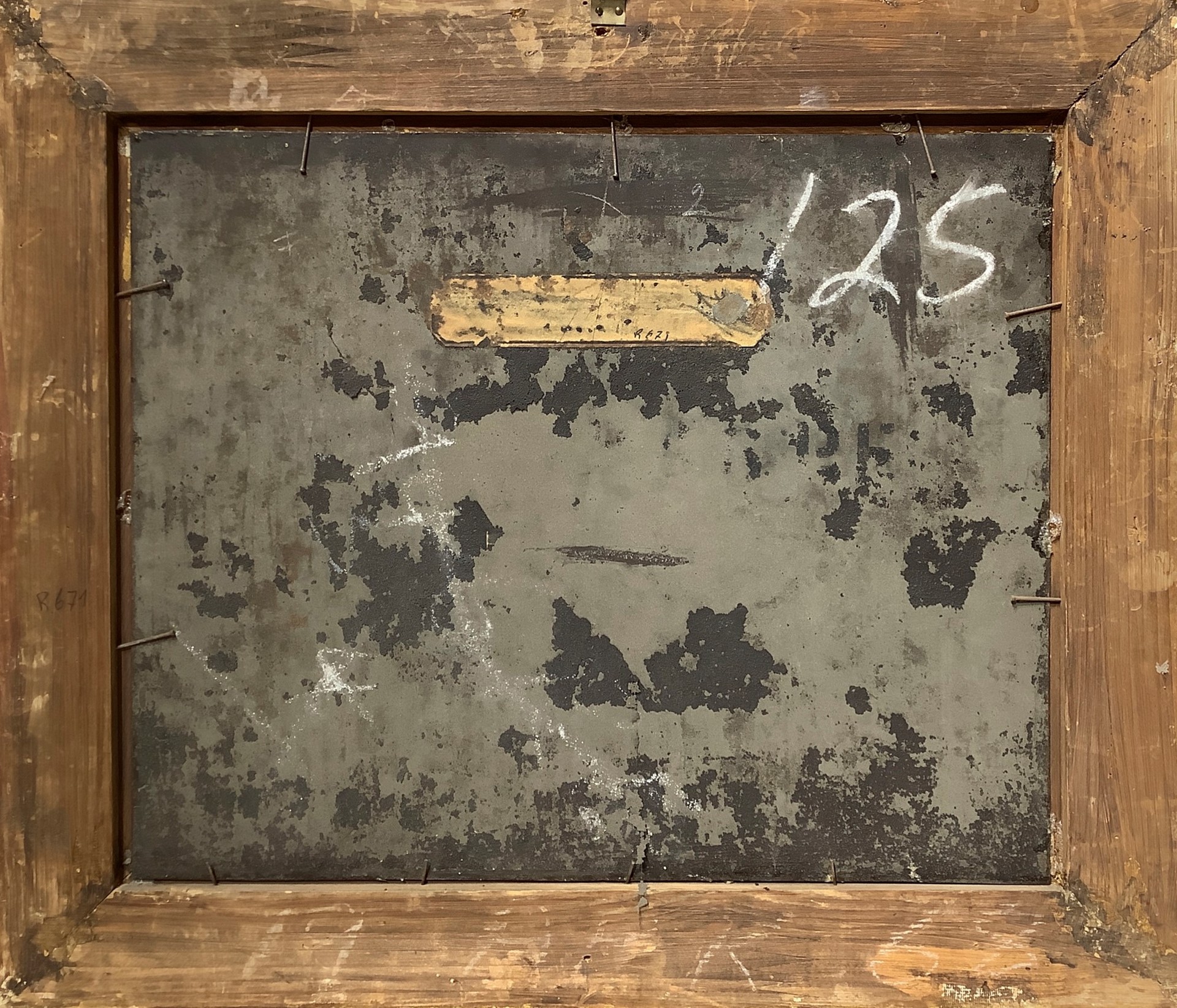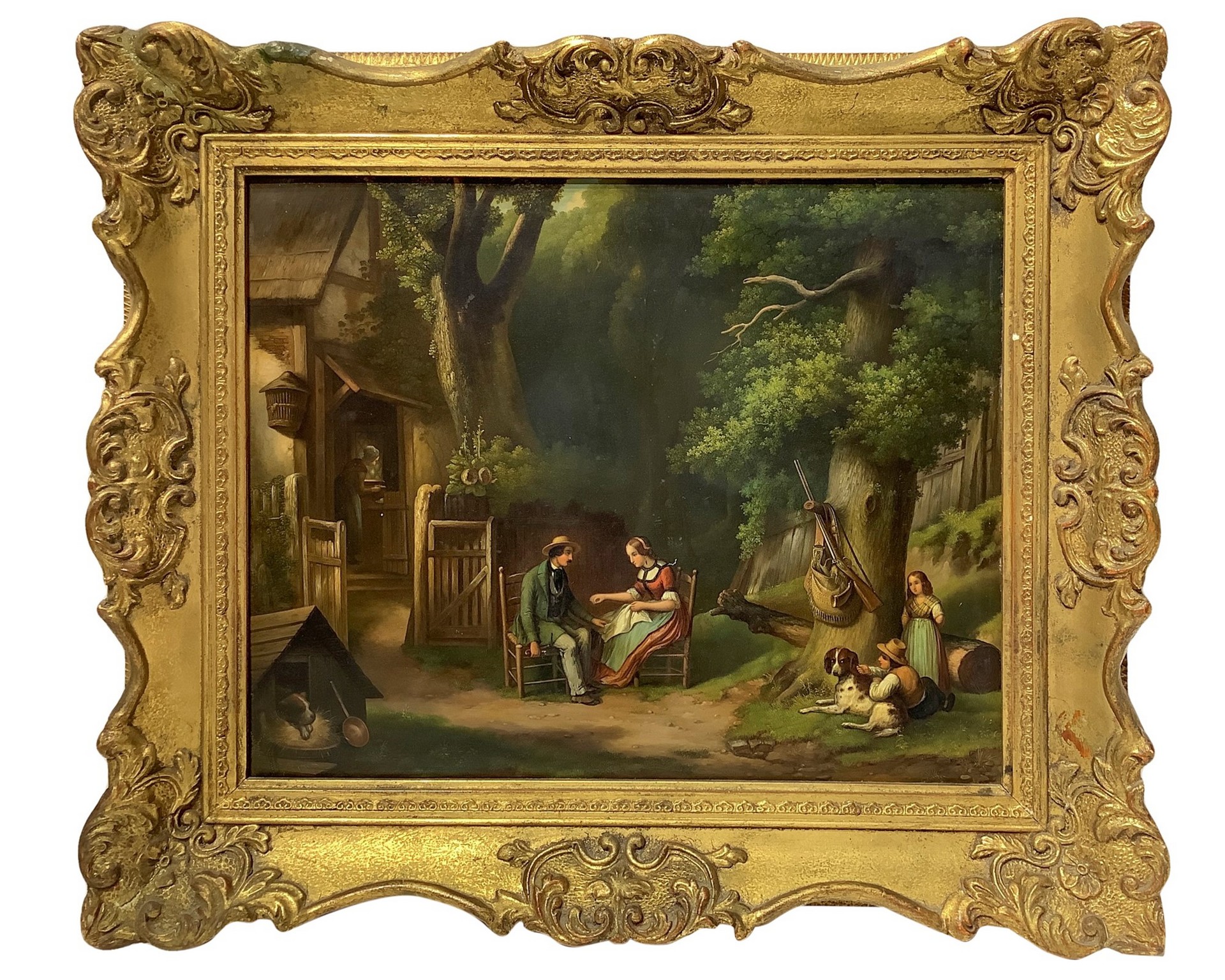 Scena familiare all'aperto con bambini e cane, nineteenth century 31x38 cm, 42x50 cm Dipinto a olio su rame pittore del XIX secolo.