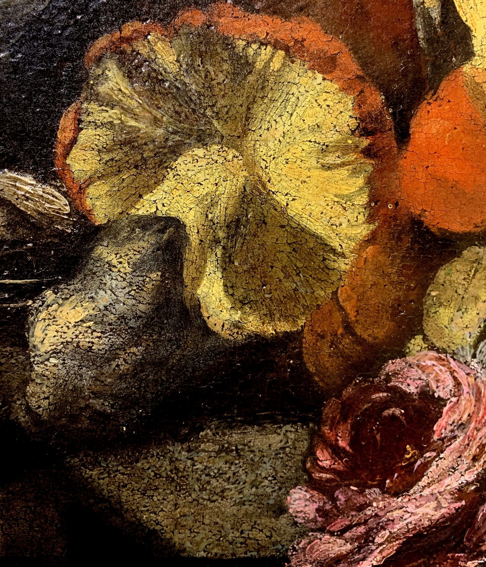 Mario de' Fiori Mario Nuzzi (attribuito_a) (Roma 1603-Roma 1673) - Trionfo di fiori con frutta, selvaggina e gioco di putti, 17th century Cm 140x107 Dipinto ad olio su tela "Protagonista assoluto di primo piano, colui il quale affermò il genere fiorante delle nature morte sì da poterne portare di diritto il nome "Mario dei Fiori". Pittore barocco, allievo del pittore caravaggesco Tommaso Salini, maturò una sapienza culturale e scientifica, oltre che artistica, che gli permise di avere le più importanti committenze dell'epoca."