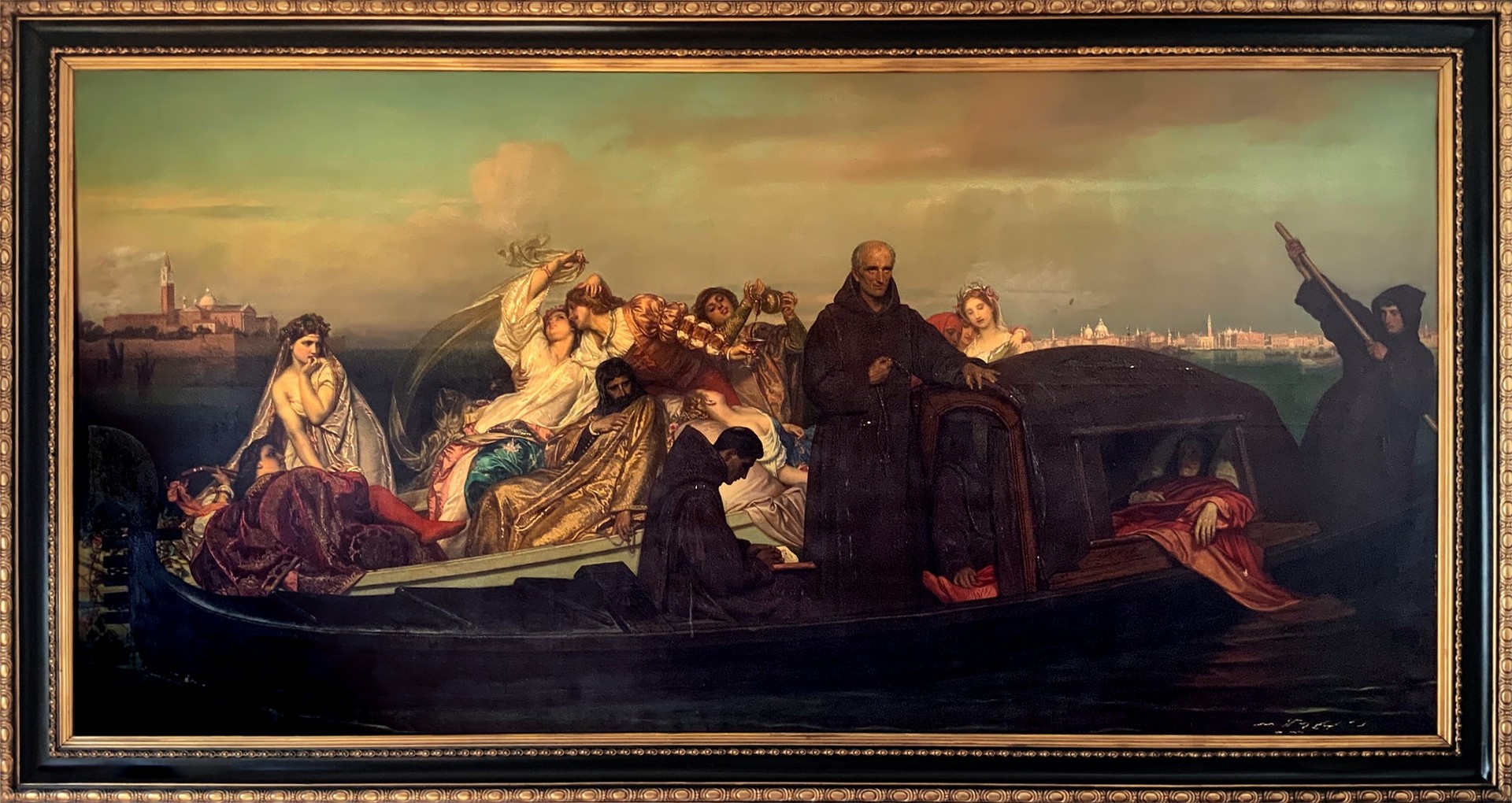 Van Lerius, Joseph Henri François (Boom 1823-Mechelen 1876) - Voluptè et dèvouement (Voluttà e devozione), 1857 140 x 295 cm, in cornice 170x325 cm Dipinto a olio su tela Dipinto firmato e datato sulla gondola in basso a sinistra J. Van Lerius 1857. Provenienza salon D.Van Spilbeck, acquistato per la collezione del Duca van Saksen-Coburg-Gotha a Vienna. Opera dichiarata d'interesse culturale ai sensi dell'art. 13 del D.Lgs 42/2004. L'acquisto è subordinato all'esercizio della prelazione da parte della soprintendenza BB.CC.AA.